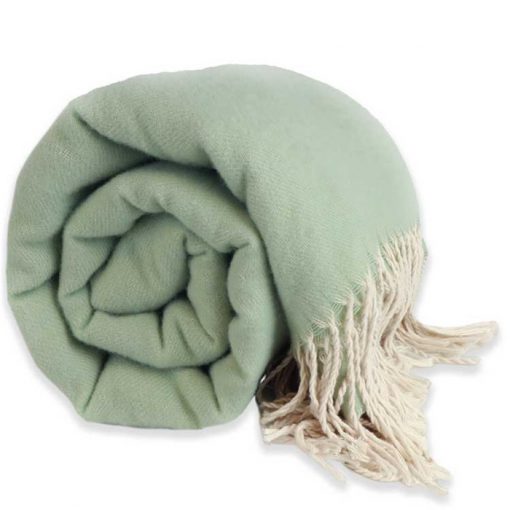 Stijlvolle zomerplaid van Unique Living met franjes in een frisse neo mint kleur. Afmeting: 130×160 cm. Heerlijk als het begint af te koelen